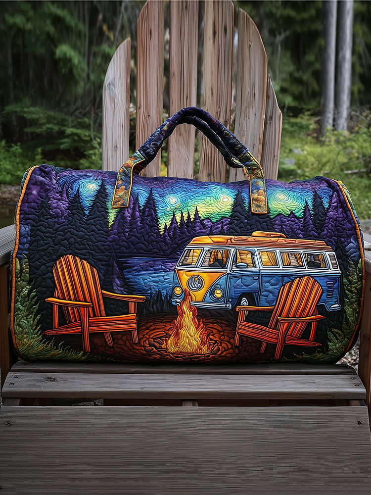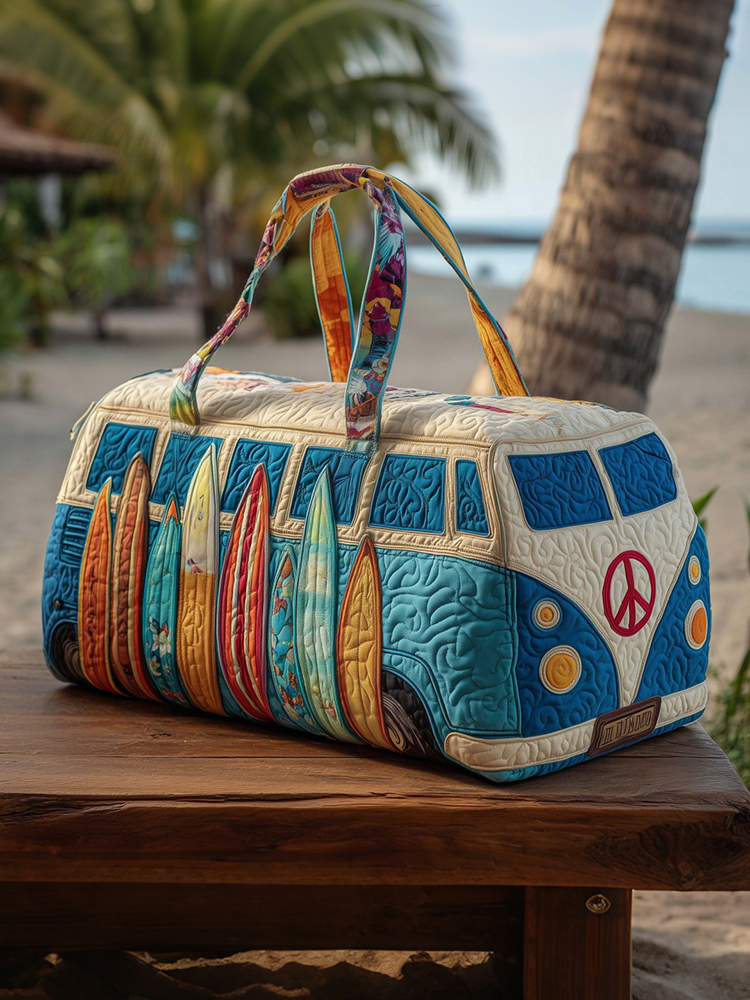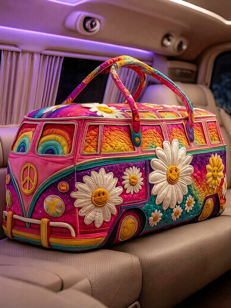 Hippie Camper Van Rider Floral Quilted Travel Bag