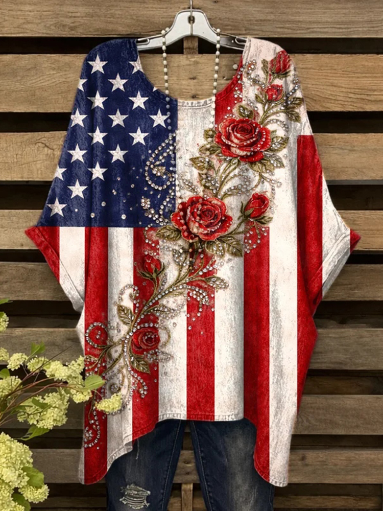 Women's Rose Floral Flag Art Print Casual T-shirt