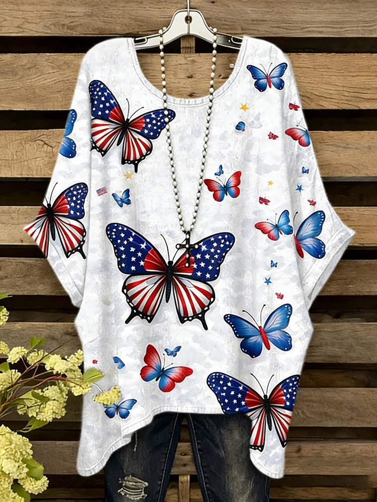 Women's Flag Eagle Art Memorial Print Casual T-shirt
