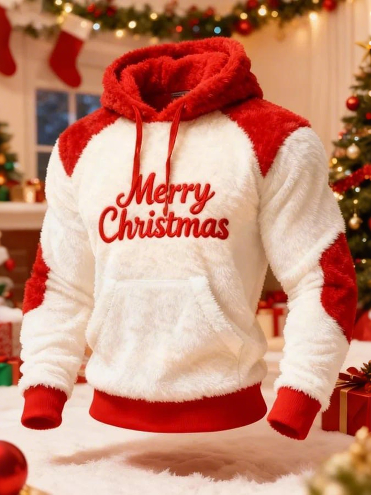 Men's Merry Christmas Pattern Flannel Hoodie