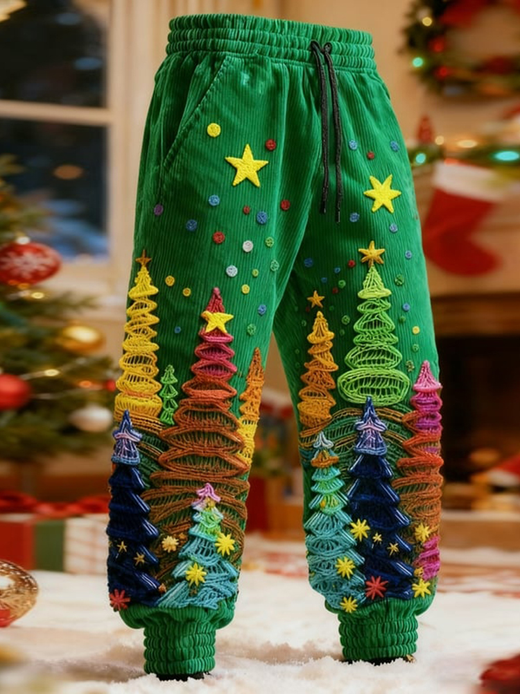 Men's Vintage Christmas Tree Art Pattern Sweatpants