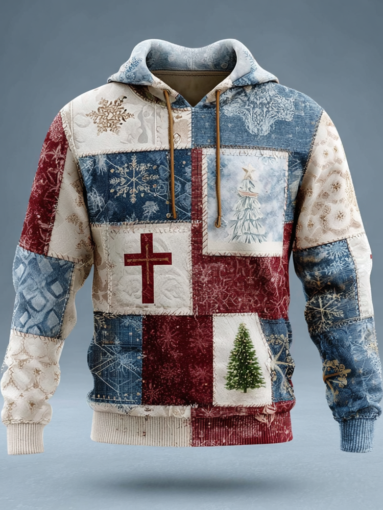 Men's Faith Christmas Patchwork Print Casual Hoodie