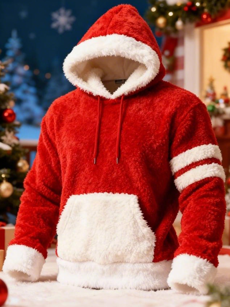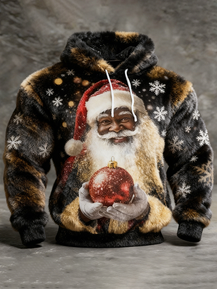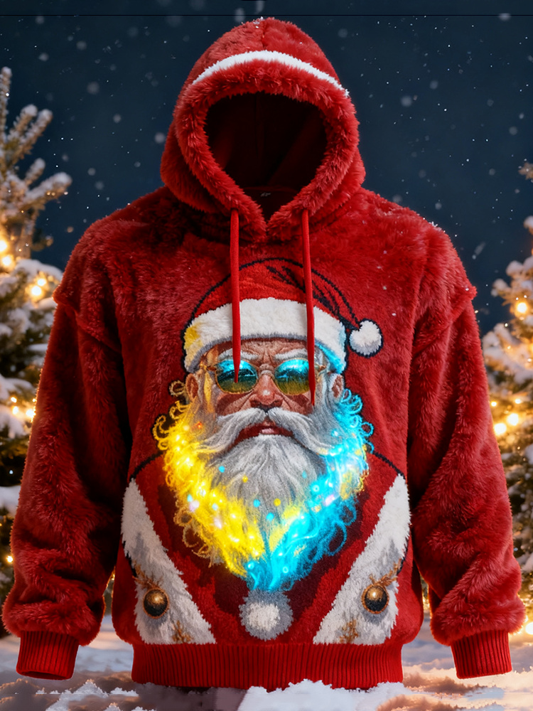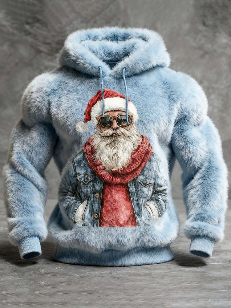 Men's Christmas Santa Claus Art Plush Warm Hoodie
