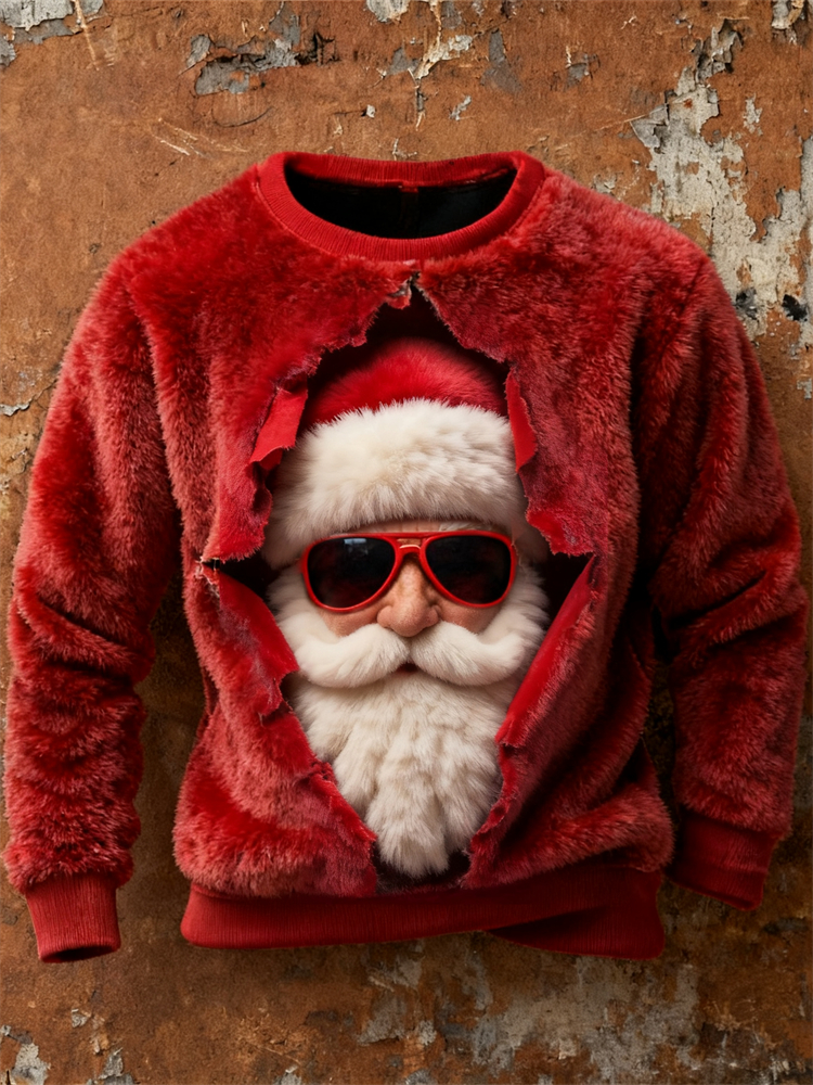 Men's Ugly Christmas Santa Claus Art Plush Sweatshirt