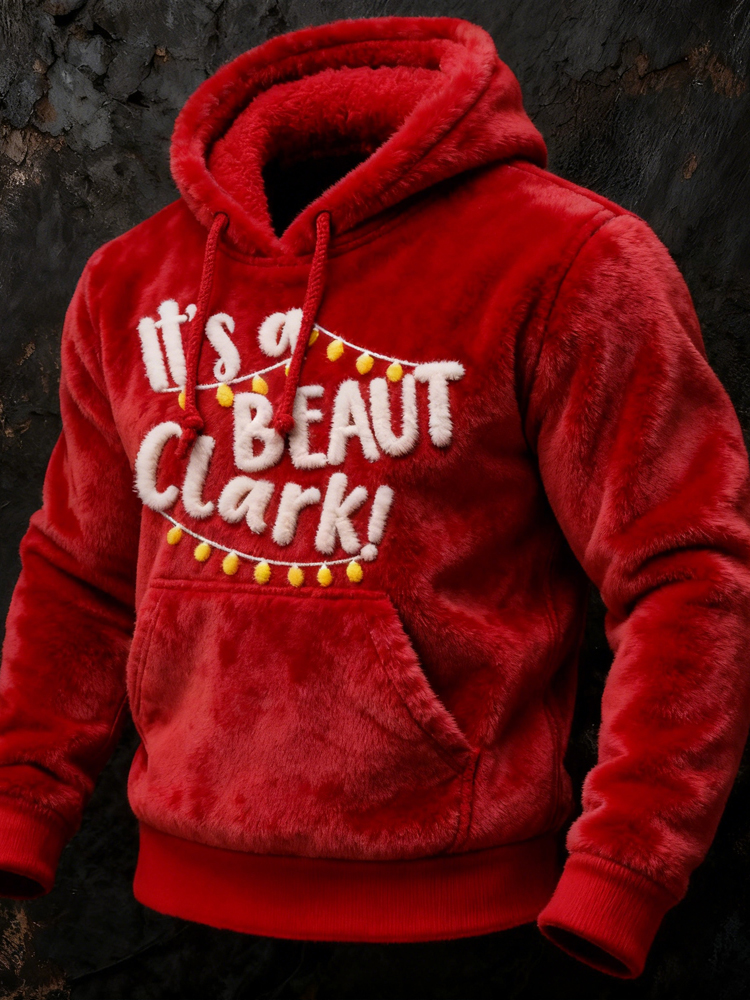 Men's Christmas Pose Pattern Plush Warm Hoodie