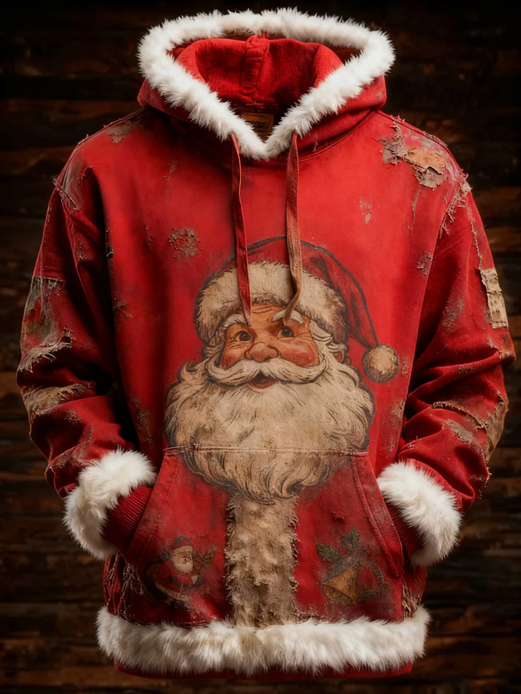 Men's Retro Christmas Santa Claus Printed Hoodie