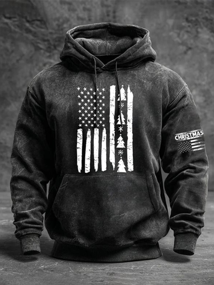 Men's Retro American Flag Christmas Tree Hoodie