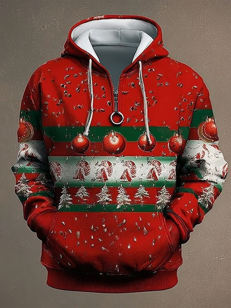Men's Vintage Christmas Tree Patchwork Print Casual Sweatshirt