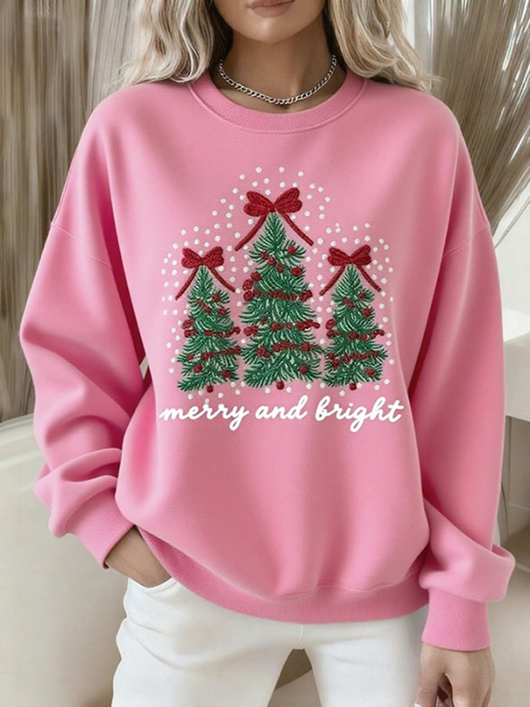 Women's Merry And Bright Christmas Tree Print Crew Neck Long Sleeve Sweatshirt