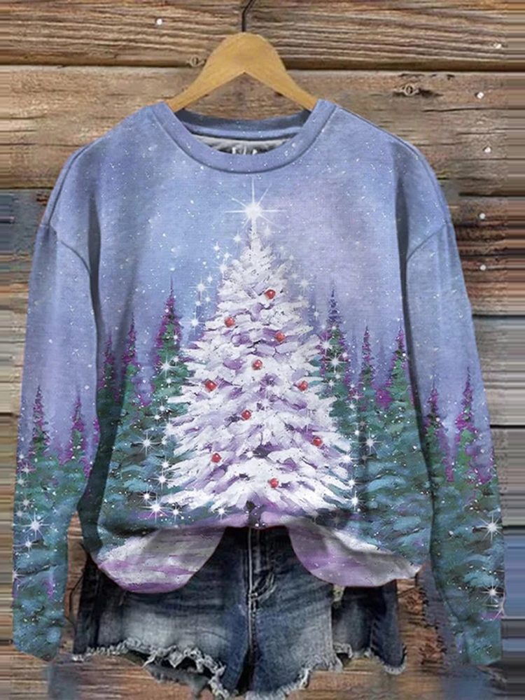 Women's Christmas Tree Print Round-neck Sweatshirt
