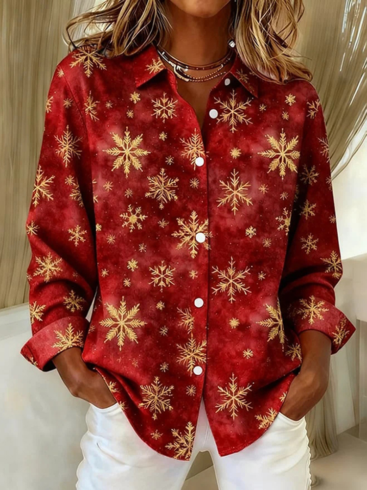 Women's Vintage Christmas Snowflake Print Long Sleeve Shirt
