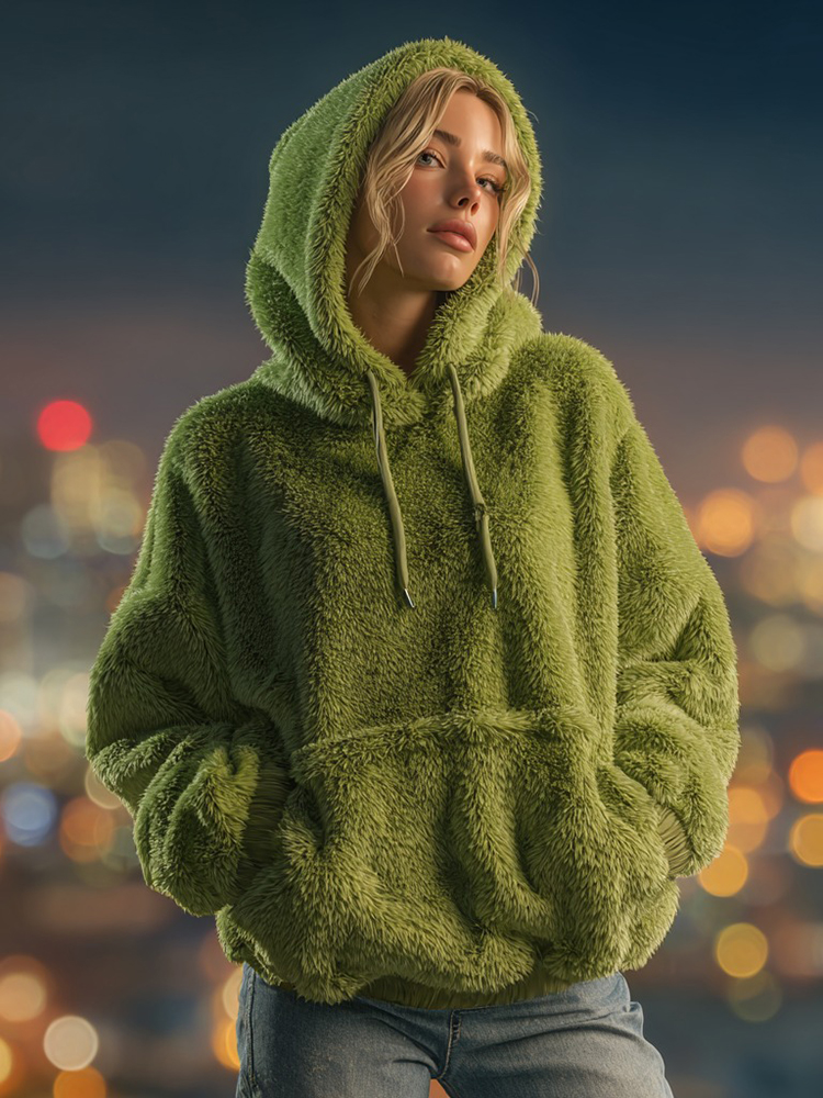 Women's Solid Color Christmas Thickened Plush Hoodie