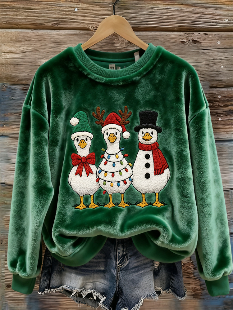 Lovely Christmas Ducks Fleece Cozy Plush Sweatshirt