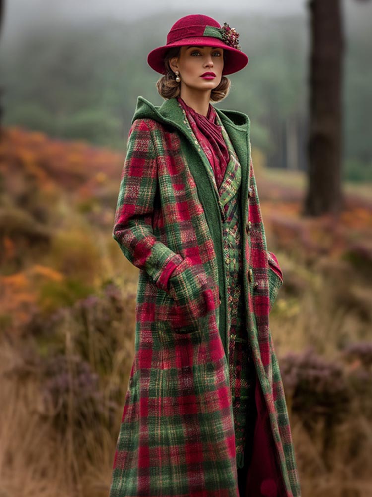 Women's Christmas Classic Scottish Plaid Knit Hooded Coat