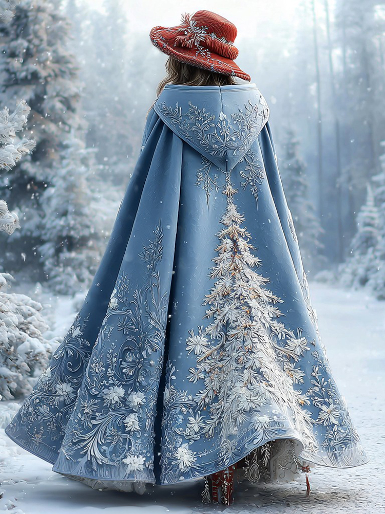 Christmas Tree And Snowflake Pattern Comfortable Casual Cape Coat