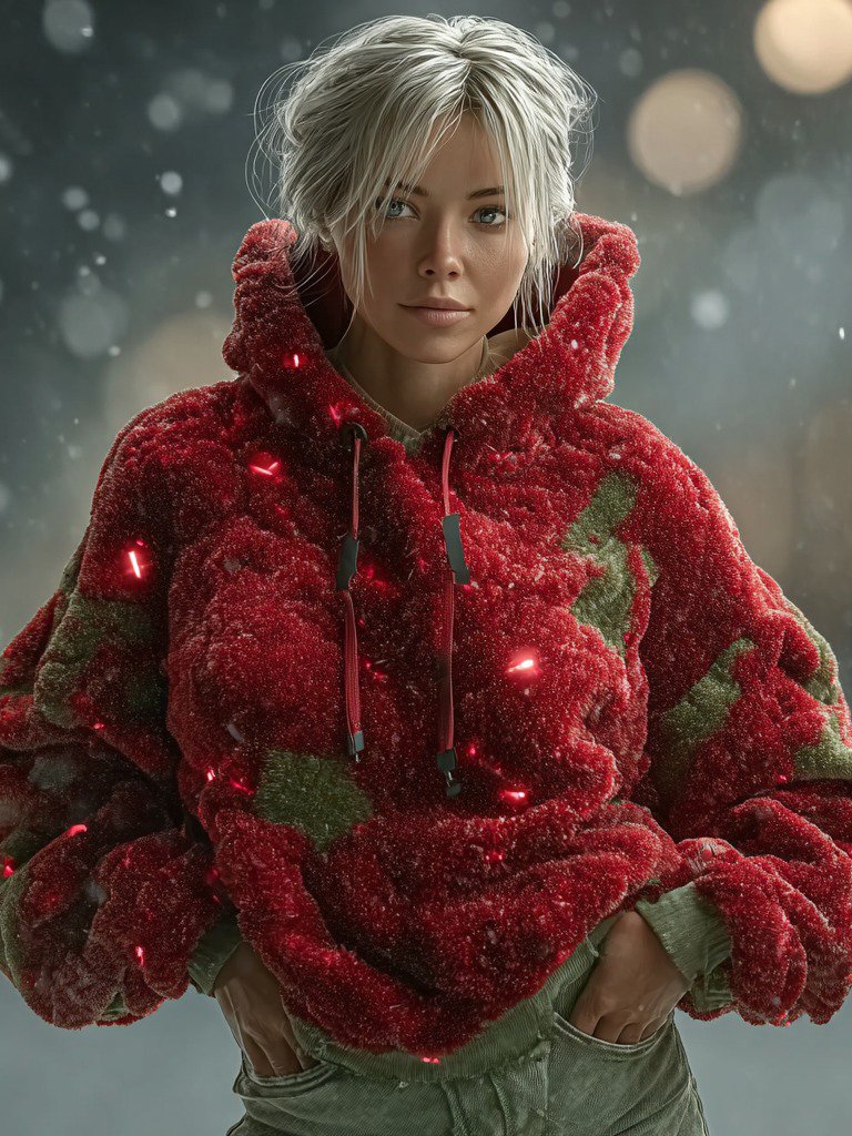 Women's Colorful Light Gradient Christmas Thickened Plush Hoodie
