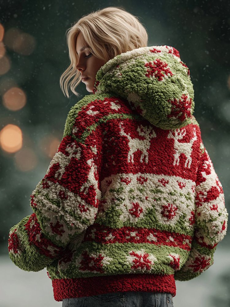 Women's Christmas Reindeer Art Thickened Warm Iceland Hoodie