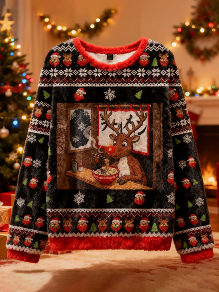 Reindeer Eating Ramen Christmas Ugly Sweater