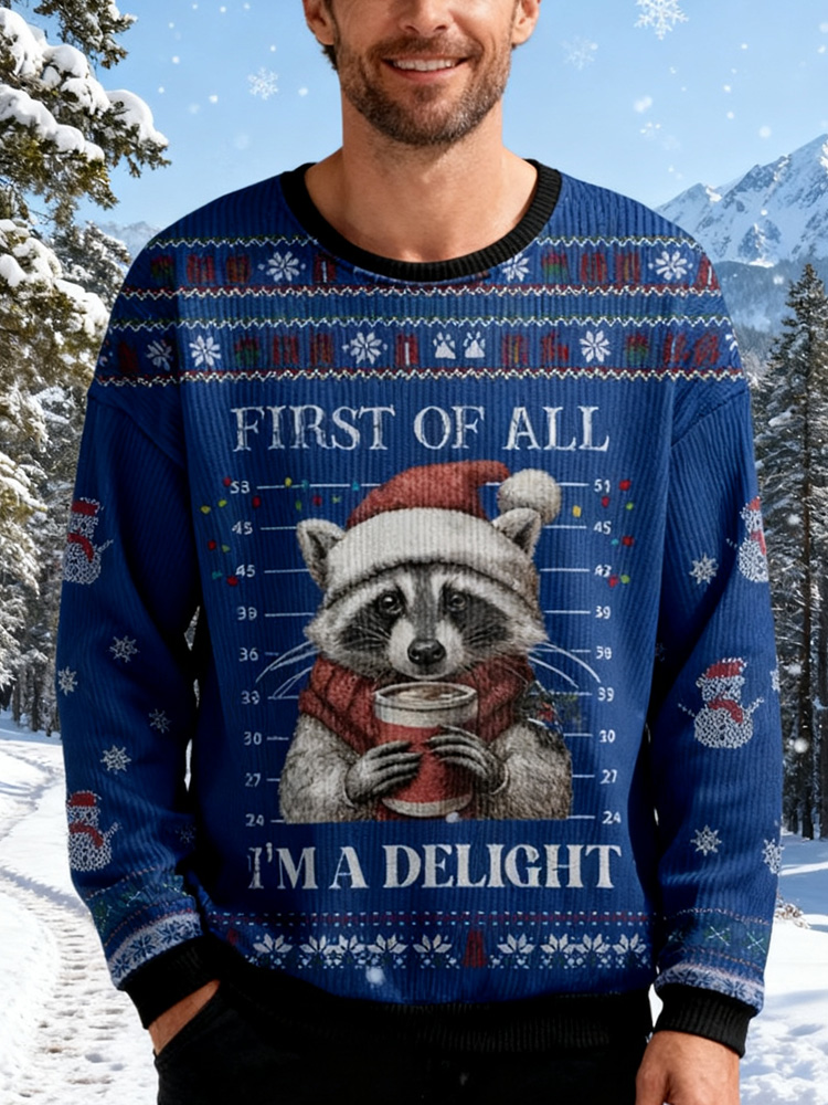 Funny Raccoon First Of All I'm A Delight Christmas Ugly Sweatshirt