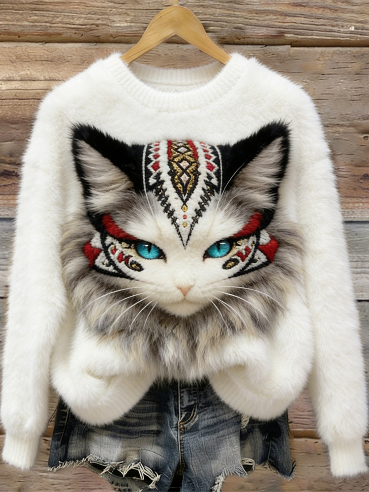 Women's Funny Cat Scratch Cozy Plush Sweater