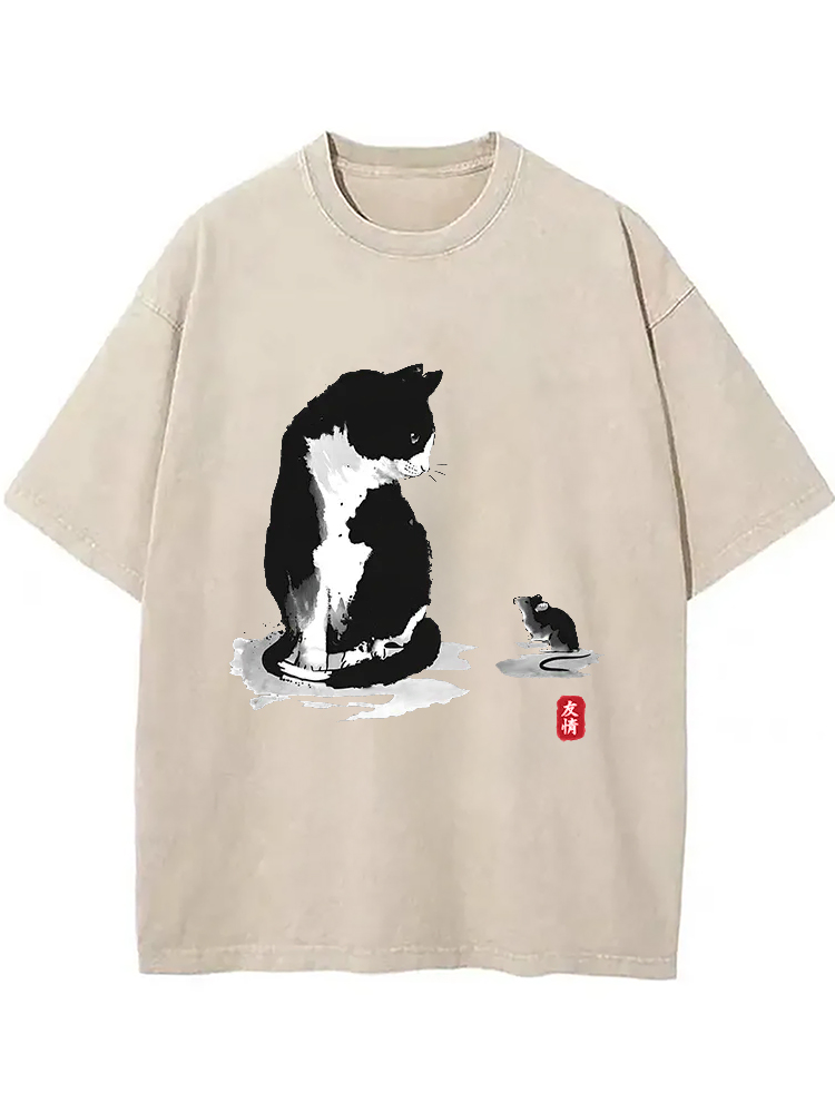 Capybara And Cat Talk Gradient Washed T-shirt