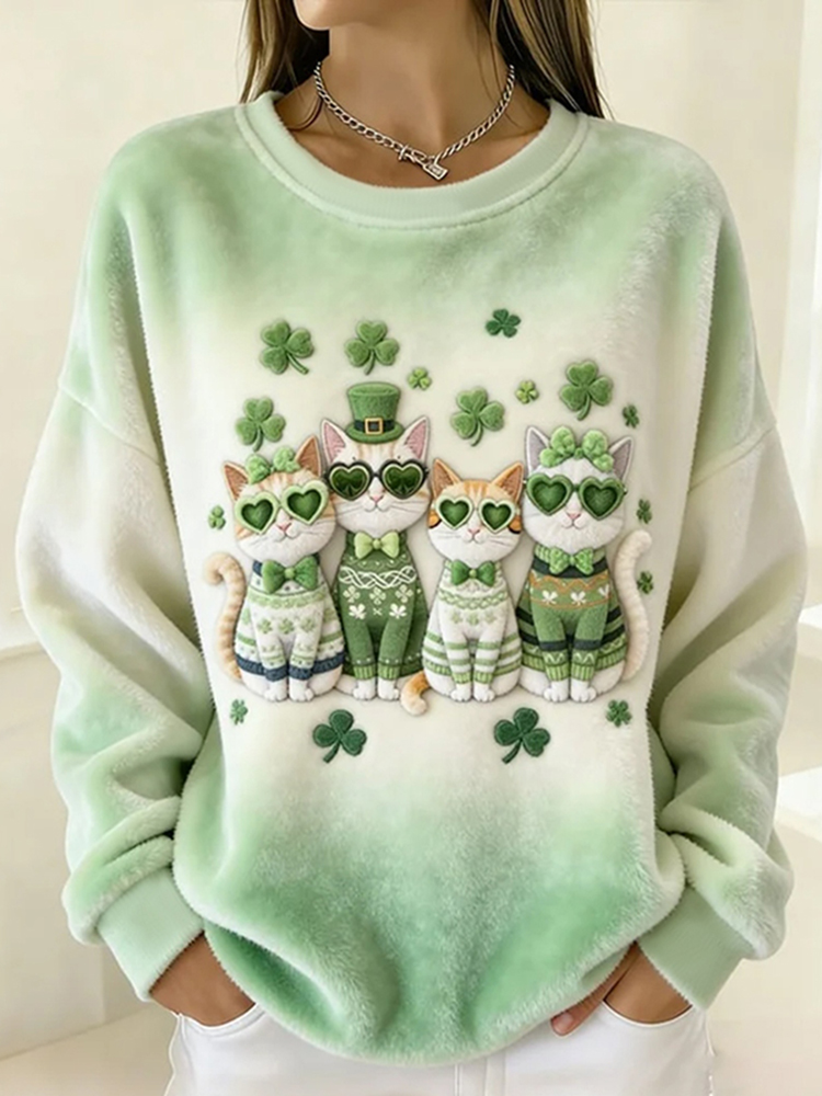 Cats Shamrocks Gradient Cozy Plush Sweatshirt
