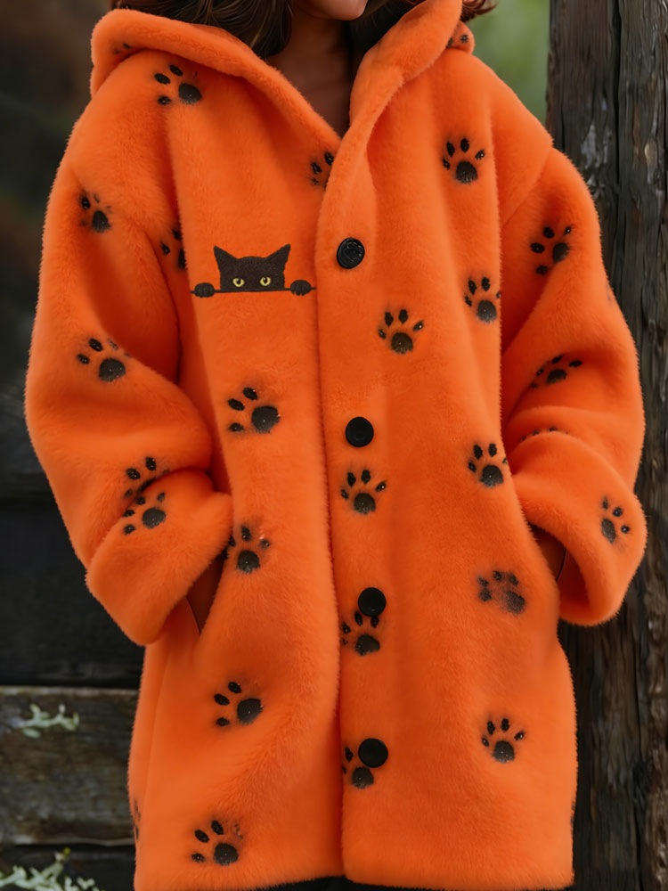 Women's Funny Cat Scratch Cozy Plush Hooded Cardigan