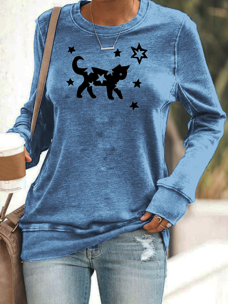 Star & Cat Pattern Women's Casual Sweatshirt