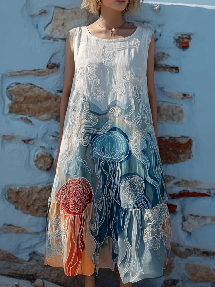 Summer Ocean Jellyfish Pattern Design Women's Sleeveless Dress