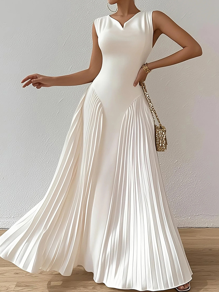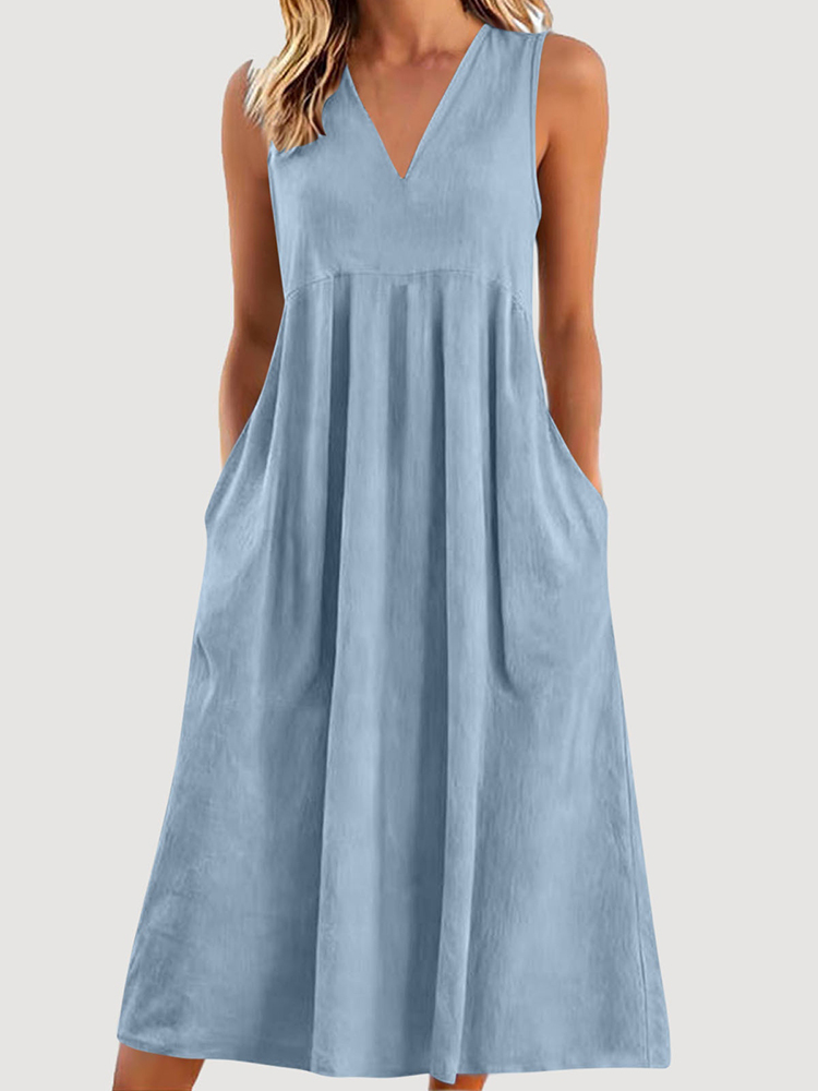 Women's Solid Color V-neck Sleeveless Linen Blend Midi Dress
