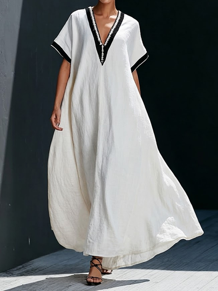 Women's Vintage Simple Colorblock Flowy Linen Blend Casual Maxi Dress