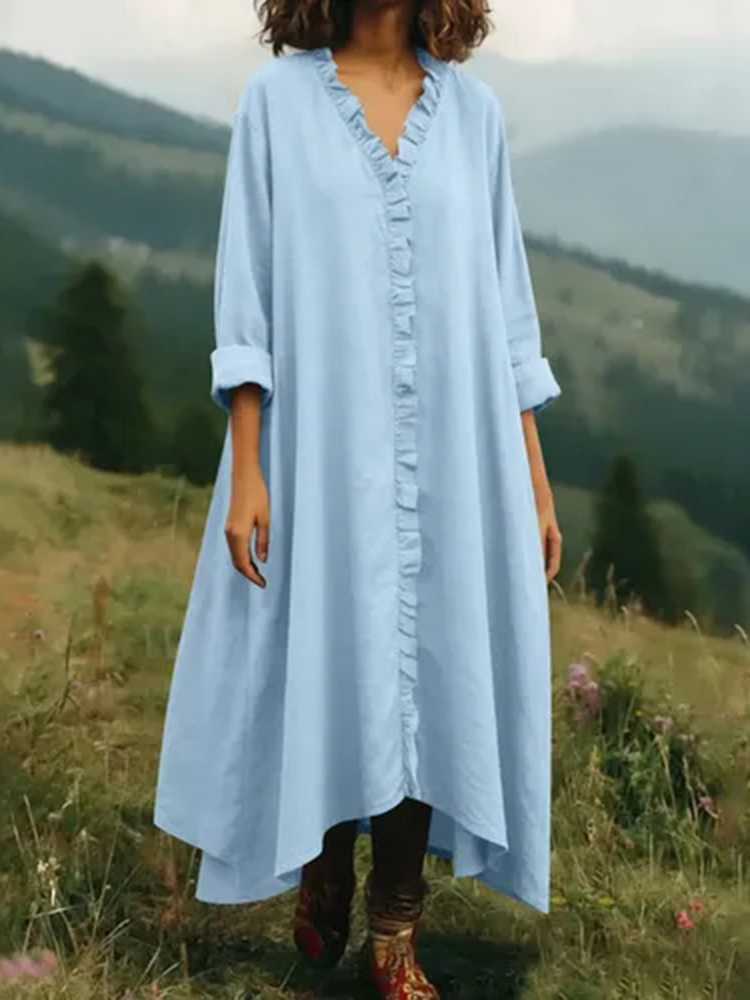 Women's Solid Color V-neck Linen Blend Irregular Hem Dress