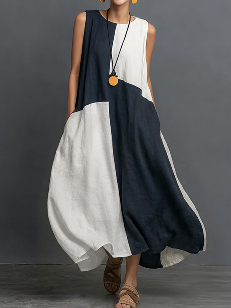 Women's Vintage Simple Colorblock Flowy Linen Blend Casual Tank Dress
