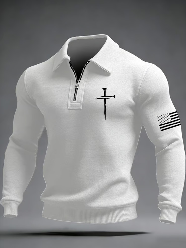 Men's Vintage Faith Cross Design Zipper Sweatshirt