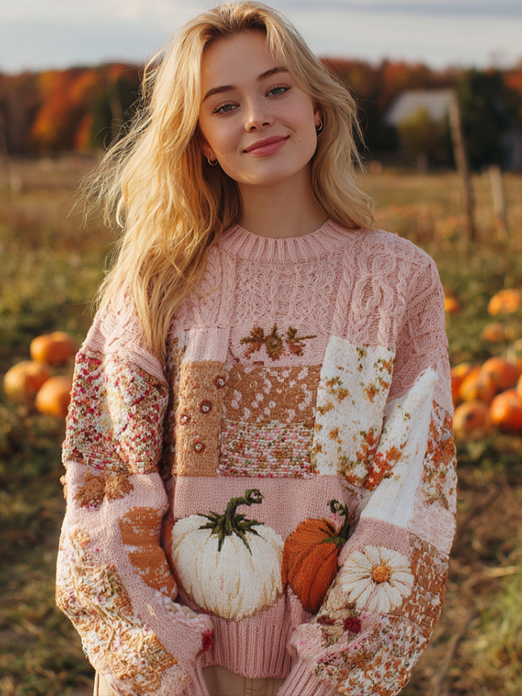 Vintage Patchwork Pattern Print Knit Pullover Sweater