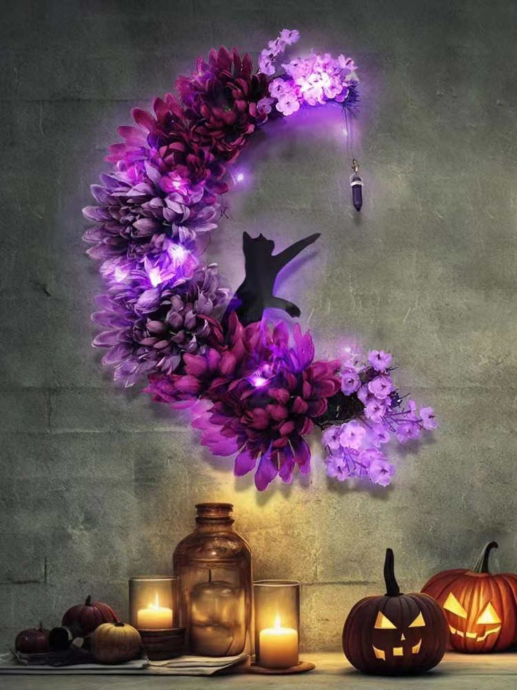 Halloween Black Cat Maple Leaf Wreath Decoration