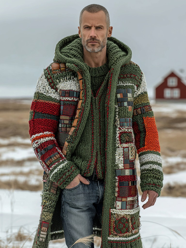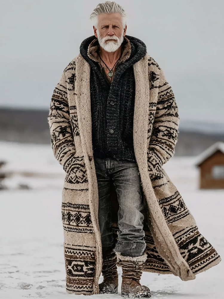 Men's Tribal Geometric Patchwork Knitted Warm Long Cardigan
