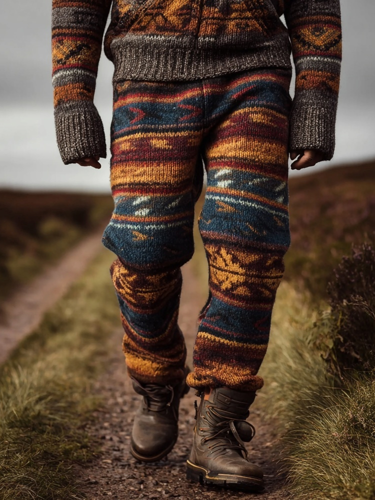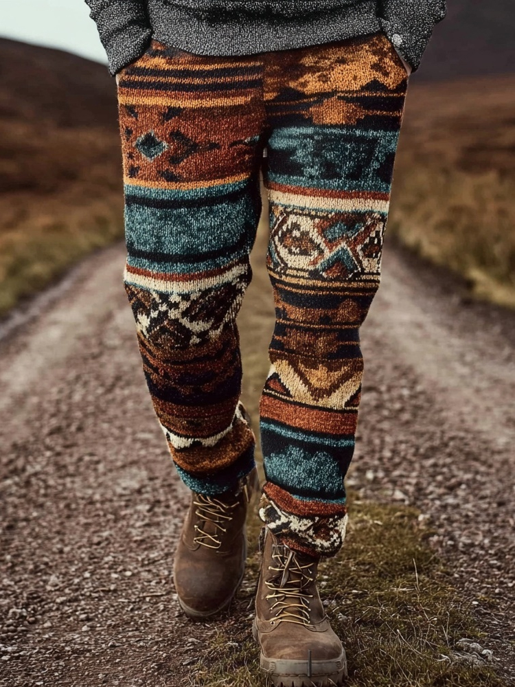 Men's Retro Western Aztec Pattern Cozy Knit Pants
