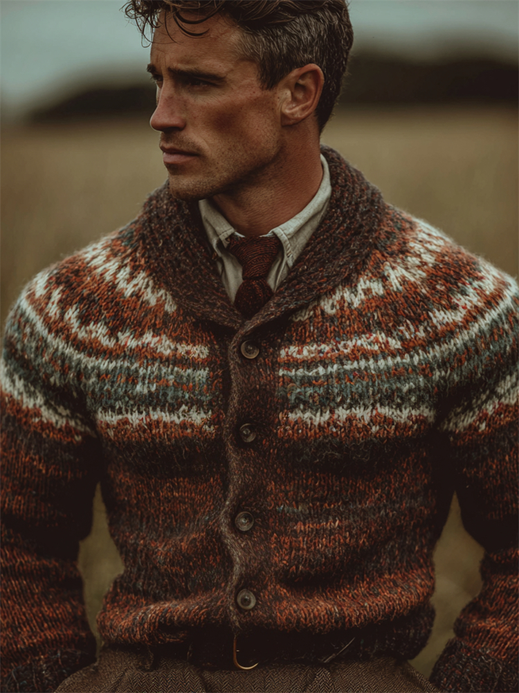 Men's Vintage 70s Retro Isle Cozy Knit Cardigan