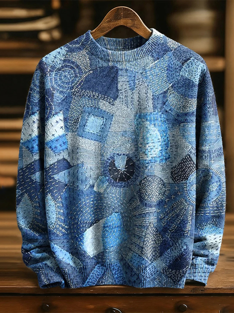 Vintage Patchwork Pattern Print Knit Pullover Sweater