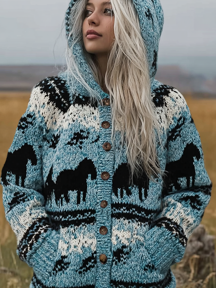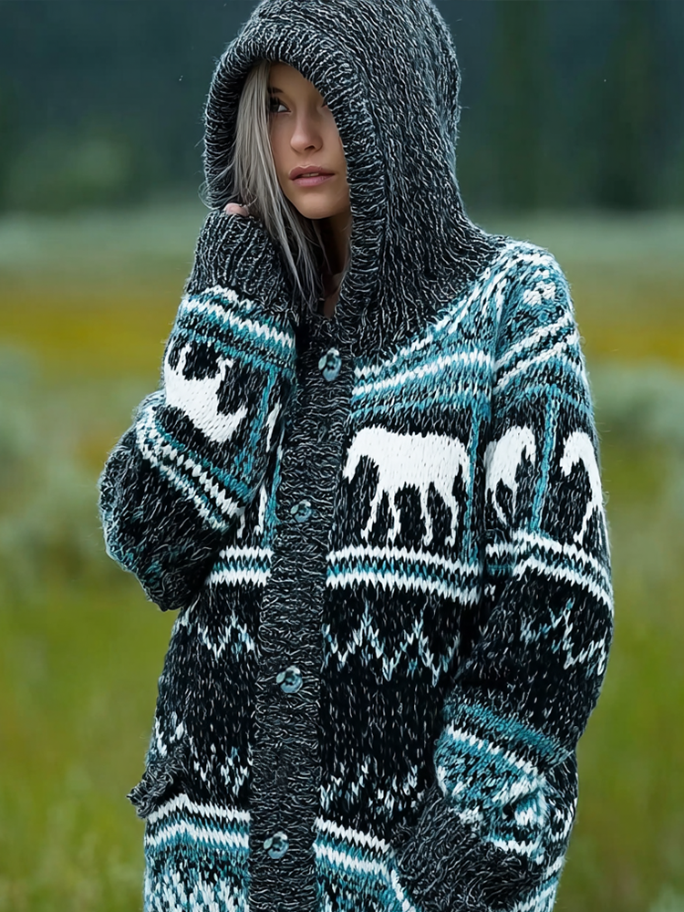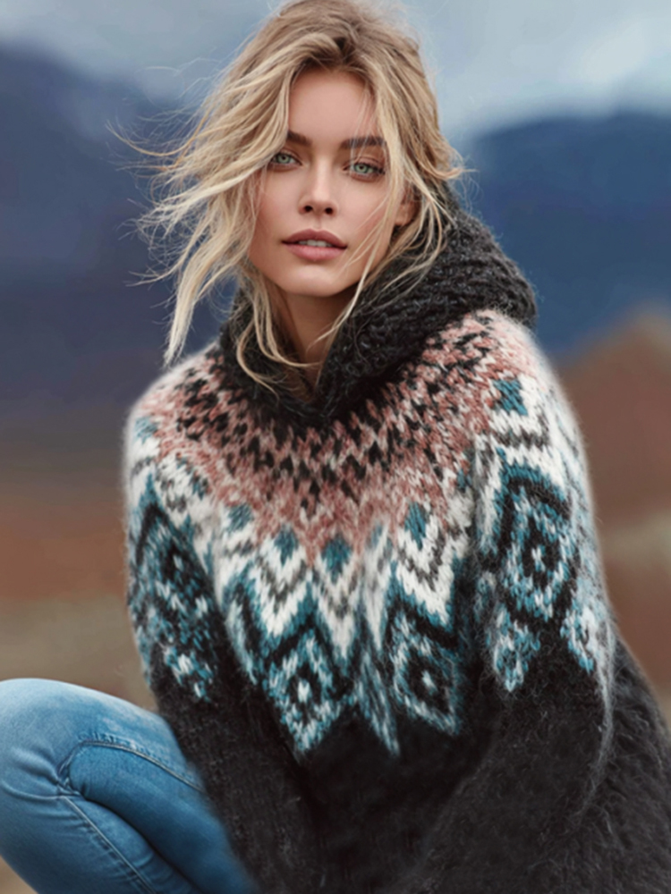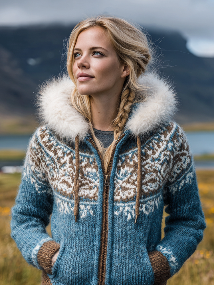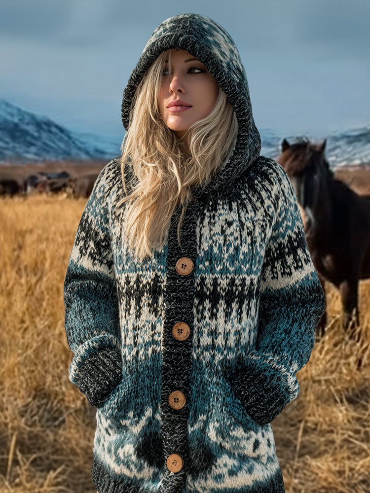 Women's Norwegian Icelandic Jacquard Cozy Knit Hooded Sweater