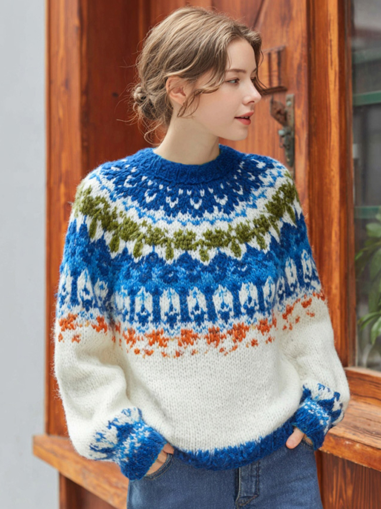 Women's Vintage Norwegian Icelandic Jacquard Cozy Knit Sweater