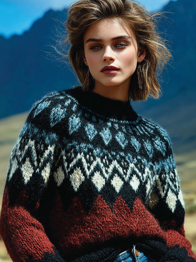 Women's Retro Geometric Pattern Cozy Knit Sweater