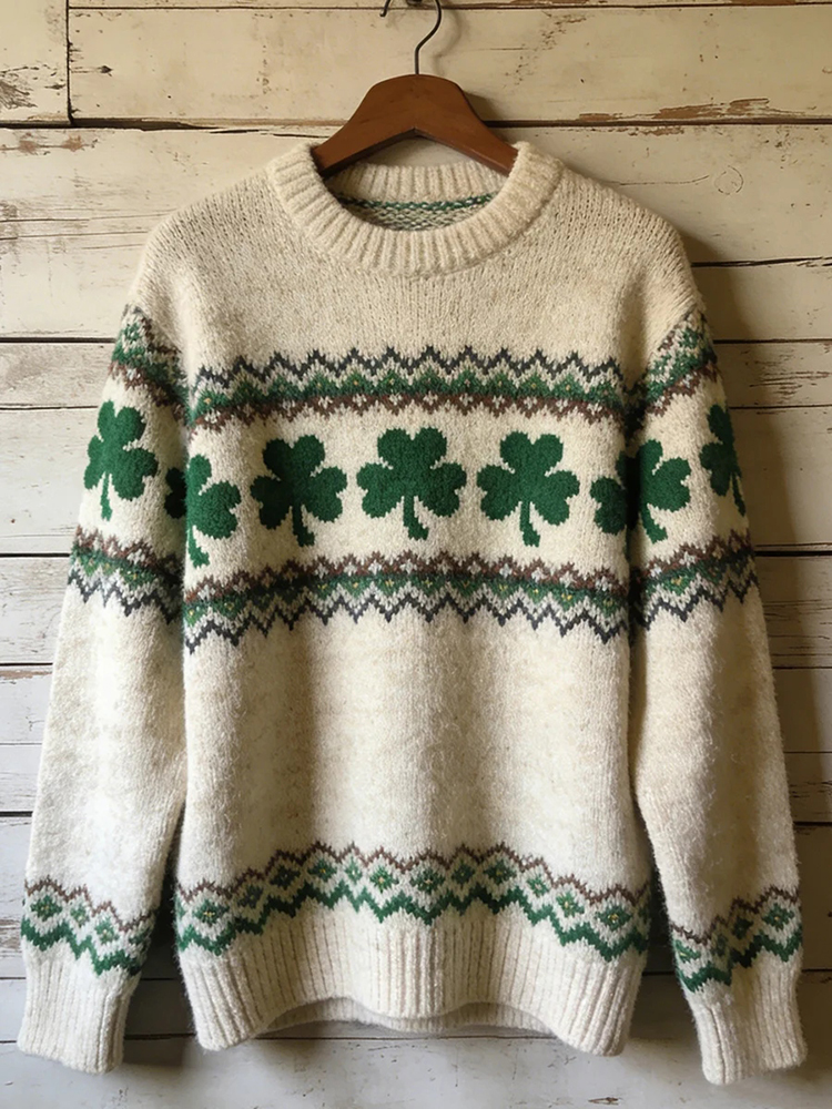 St. Patrick's Day Colorblock Shamrock Print Sweater