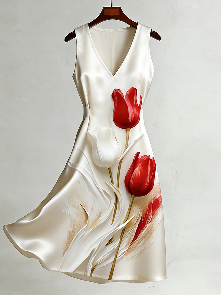 Women's Retro Tulip Oil Painting-style Smooth Dress