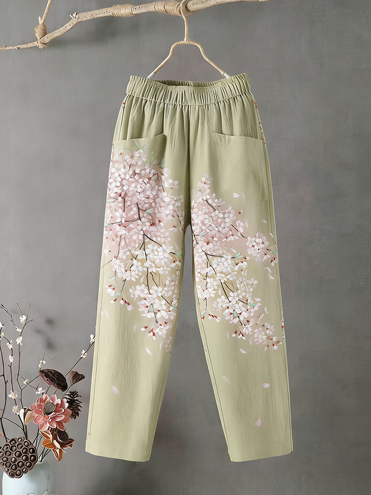 Casual Floral Embroidered Comfortable Linen Pants