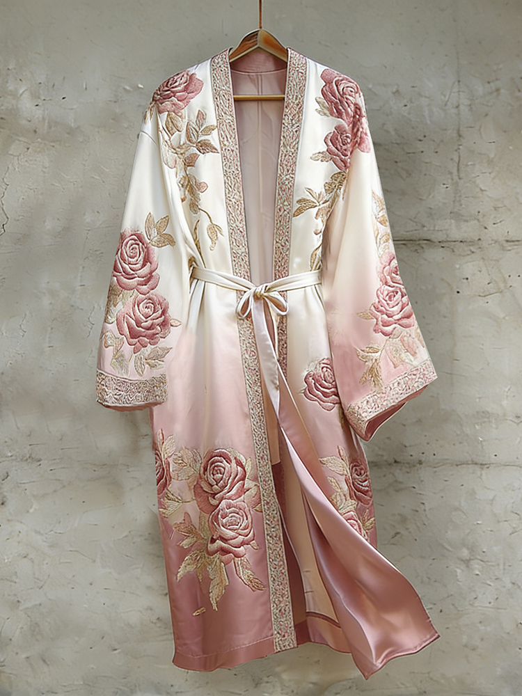 Women's Retro Rose Gradient Pattern Smooth Comfy Kimono