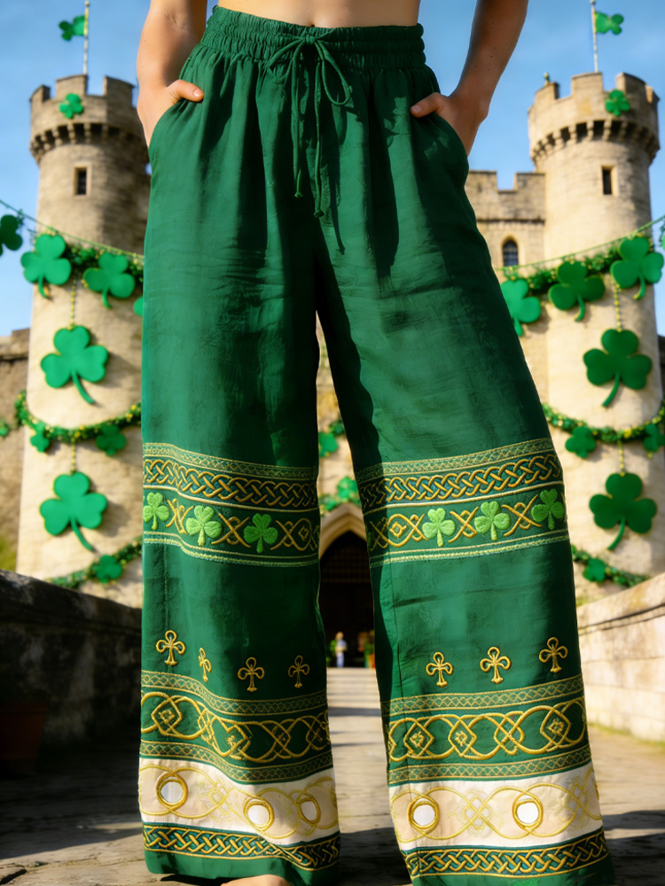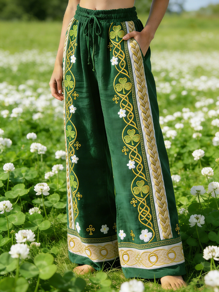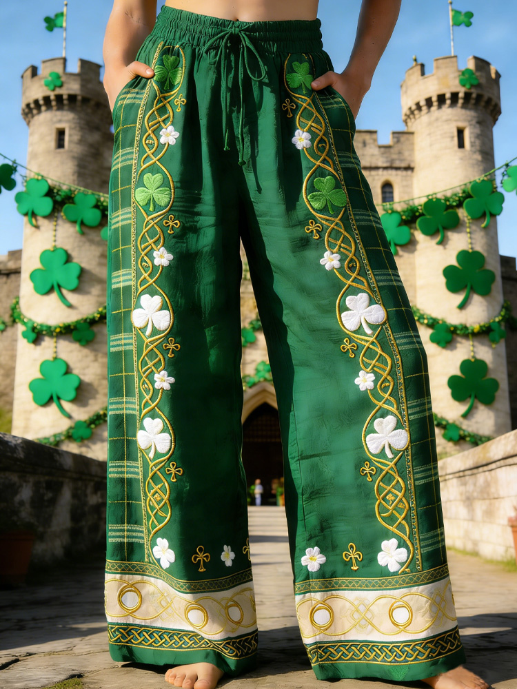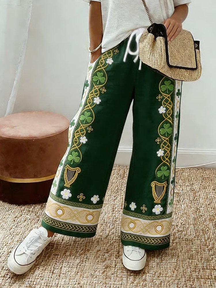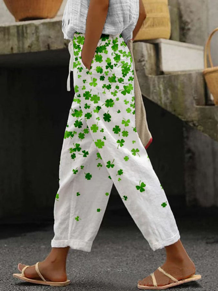 Women's Shamrock Flower St. Patrick's Day Print Casual Pants