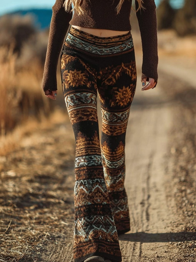 Classy Retro Western Aztec Pattern Cozy Flared Leggings