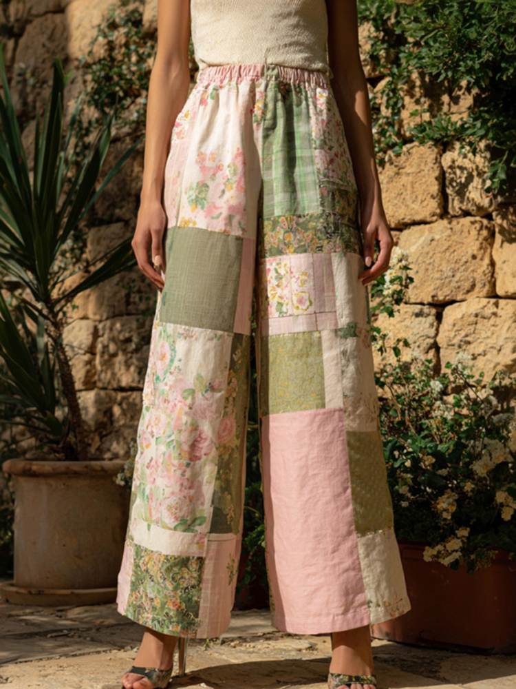 Women's Retro Bohemian Floral Patchwork Linen Trousers